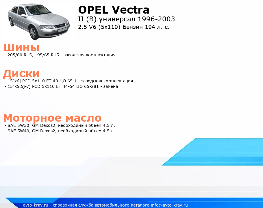 Vectra 2.5 V6 (5x110) Бензин 194 л. с.