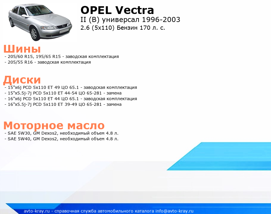 Vectra 2.6 (5x110) Бензин 170 л. с.