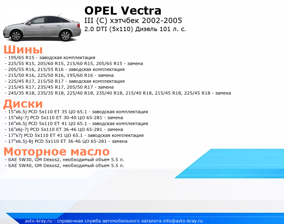 Vectra 2.0 DTI (5x110) Дизель 101 л. с.