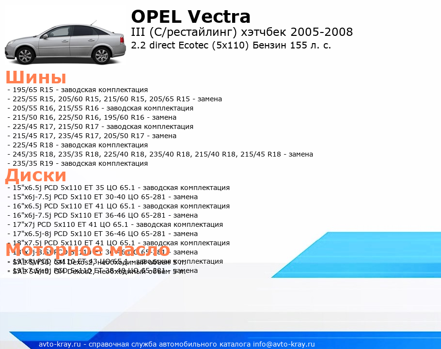 Vectra 2.2 direct Ecotec (5x110) Бензин 155 л. с.