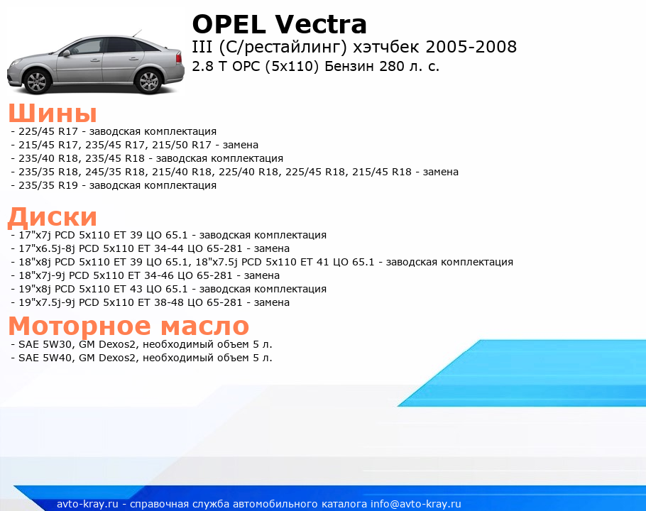 Vectra 2.8 T OPC (5x110) Бензин 280 л. с.