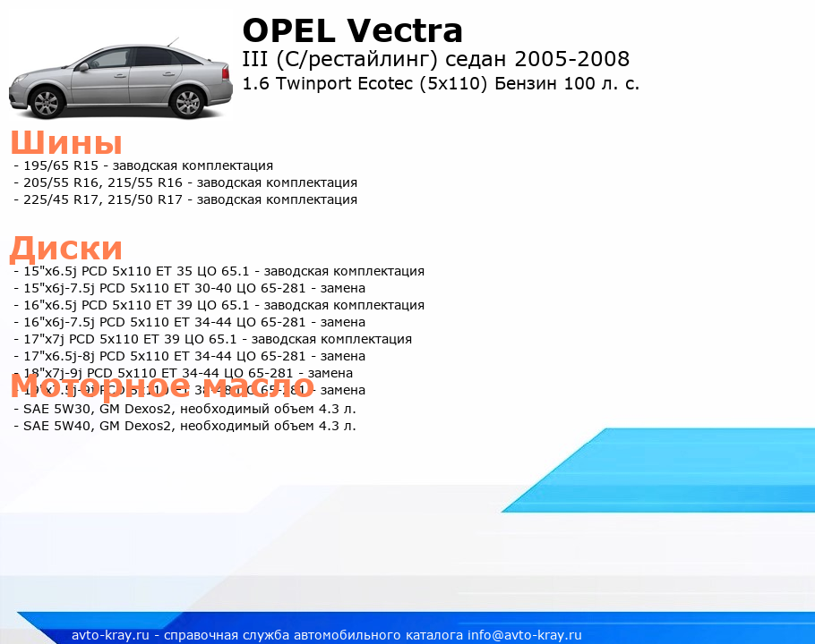 Vectra 1.6 Twinport Ecotec (5x110) Бензин 100 л. с.