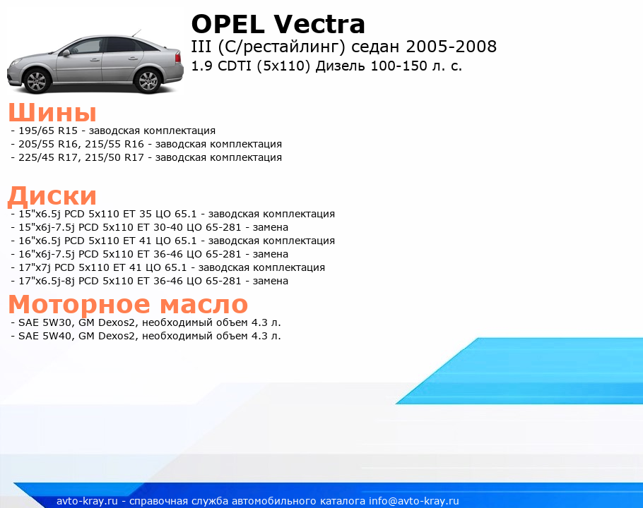 Vectra 1.9 CDTI (5x110) Дизель 100-150 л. с.