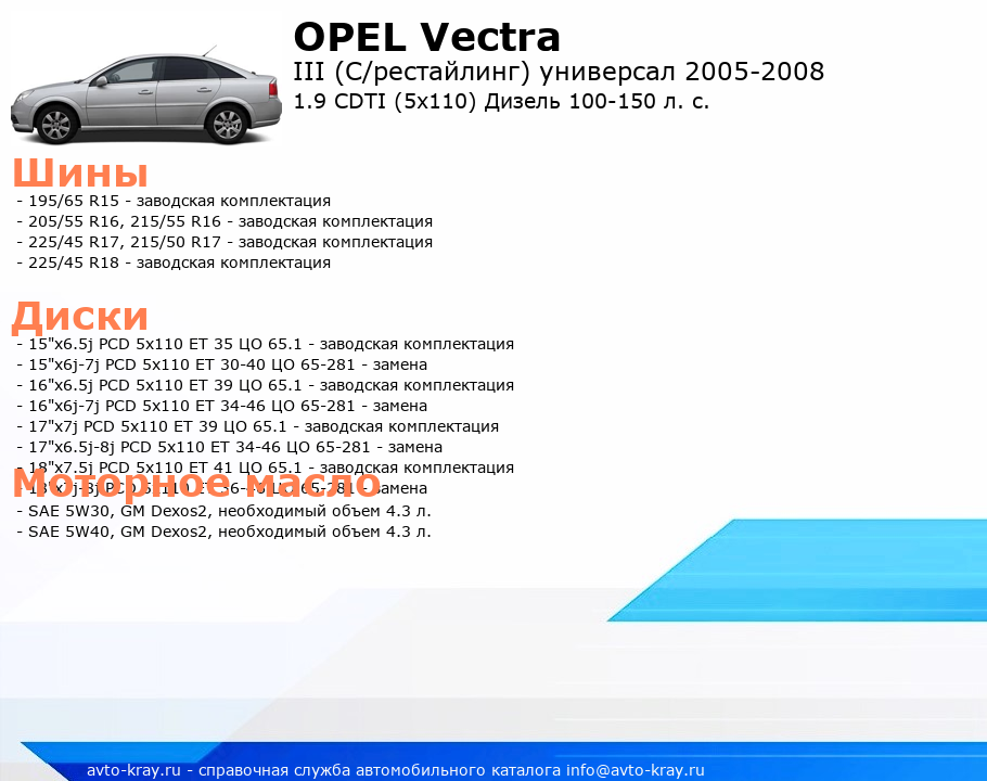 Vectra 1.9 CDTI (5x110) Дизель 100-150 л. с.