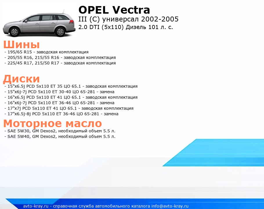 Vectra 2.0 DTI (5x110) Дизель 101 л. с.