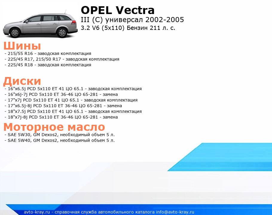 Vectra 3.2 V6 (5x110) Бензин 211 л. с.