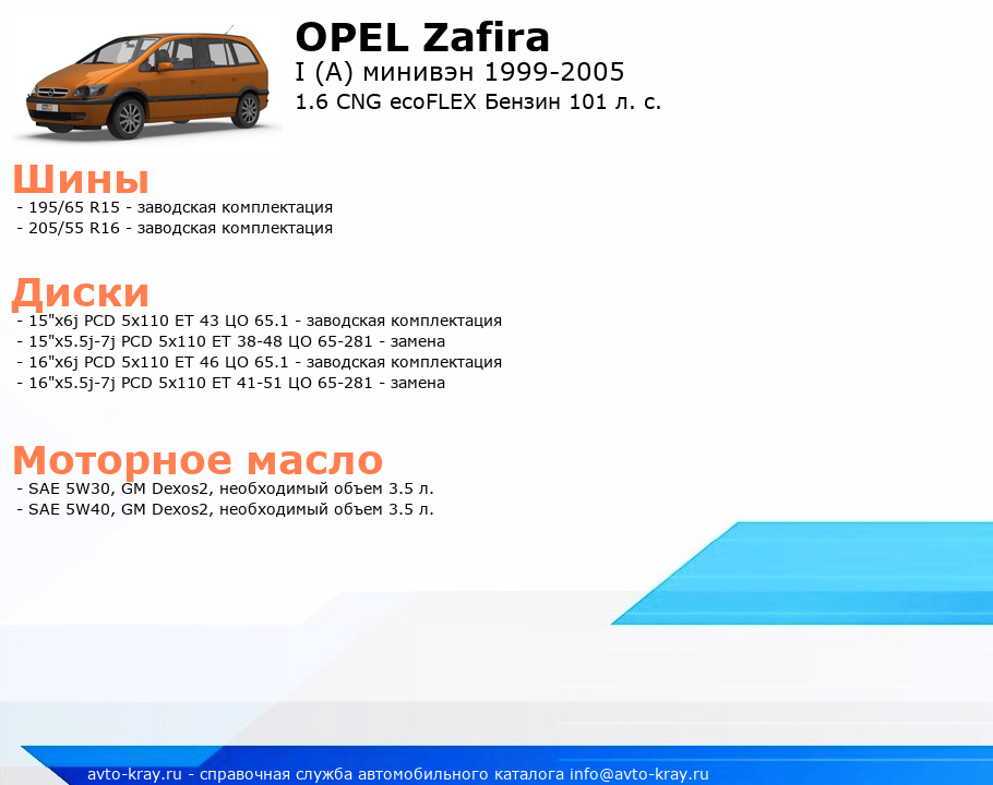 Zafira 1.6 CNG ecoFLEX Бензин 101 л. с.
