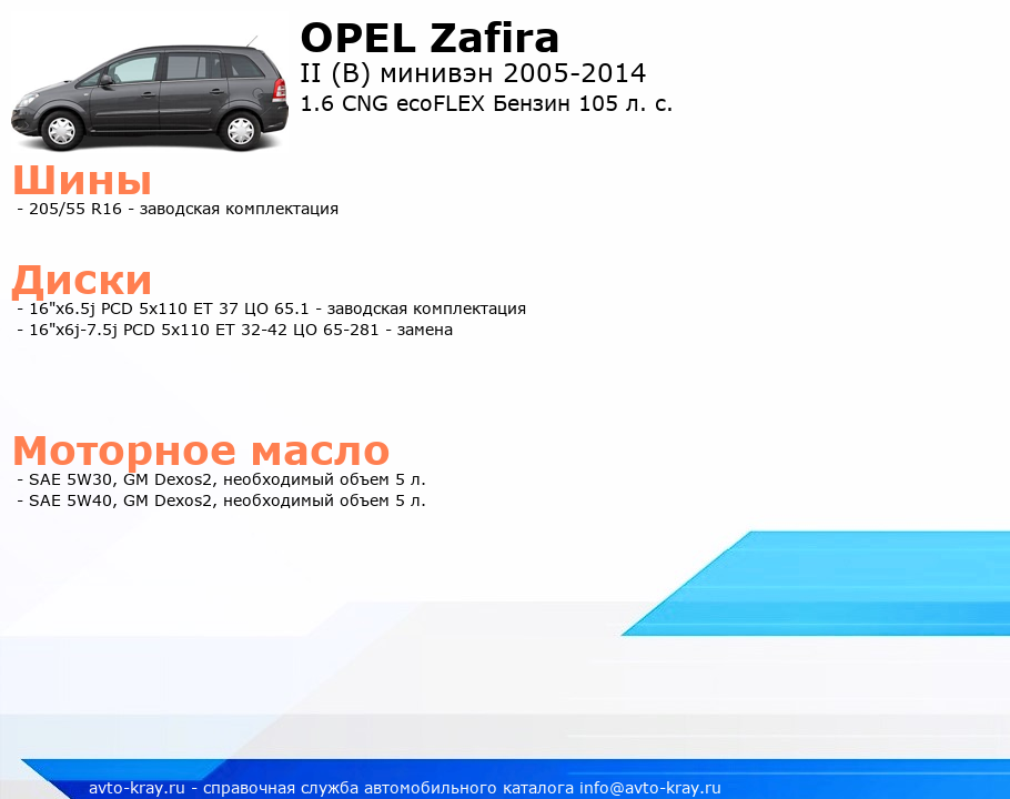 Zafira 1.6 CNG ecoFLEX Бензин 105 л. с.
