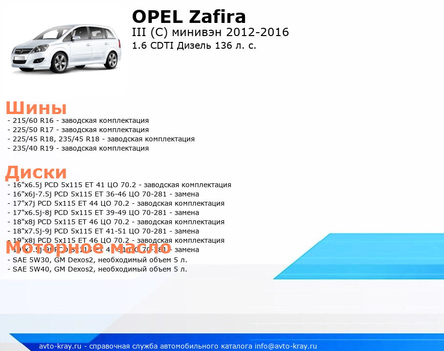 Zafira 1.6 CDTI Дизель 136 л. с.