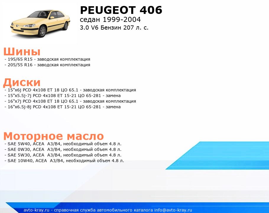 406 3.0 V6 Бензин 207 л. с.
