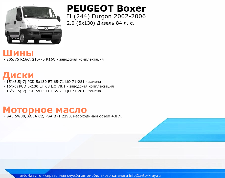 Boxer 2.0 (5x130) Дизель 84 л. с.