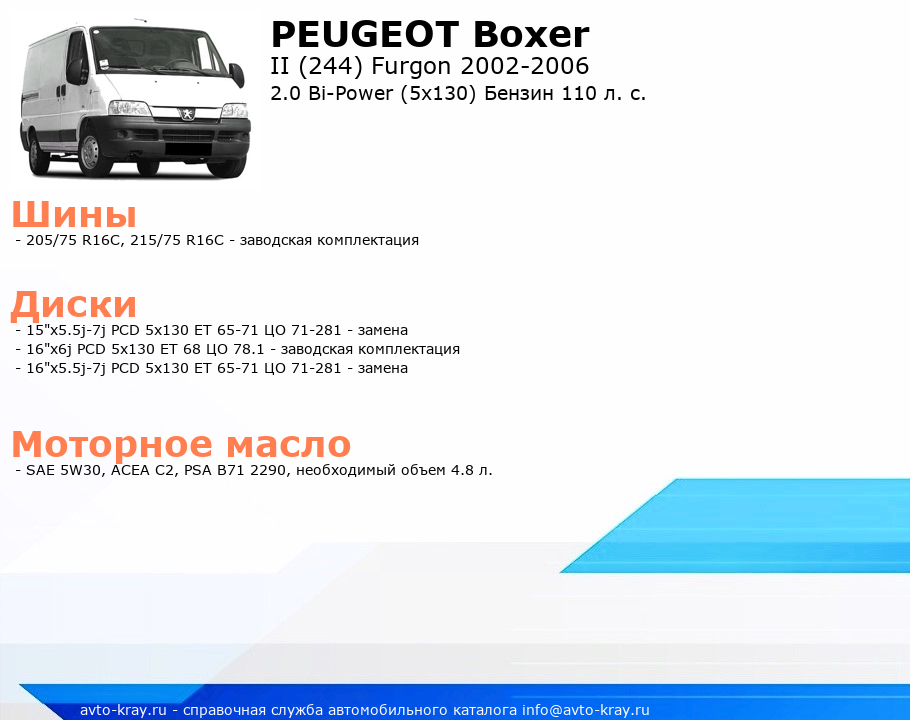 Boxer 2.0 Bi-Power (5x130) Бензин 110 л. с.