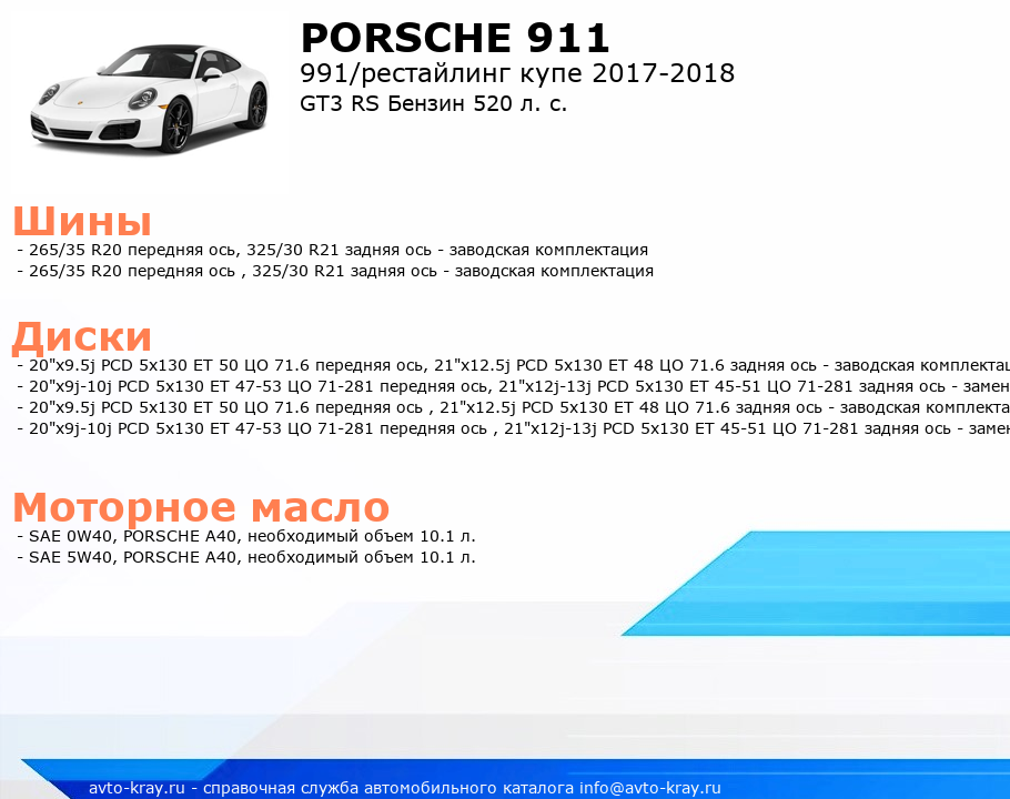 911 GT3 RS Бензин 520 л. с.