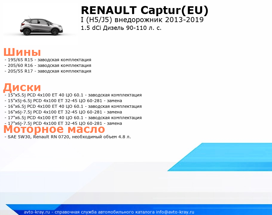 Captur(EU) 1.5 dCi Дизель 90-110 л. с.