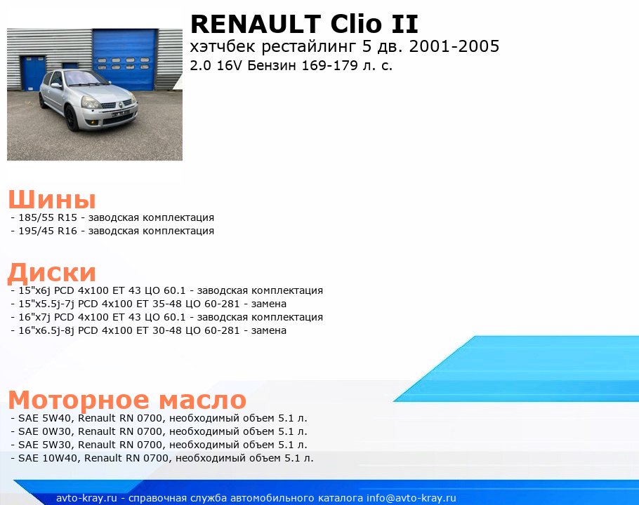 Clio II 2.0 16V Бензин 169-179 л. с.