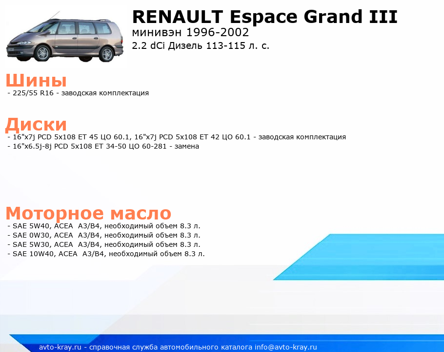 Espace Grand III 2.2 dCi Дизель 113-115 л. с.