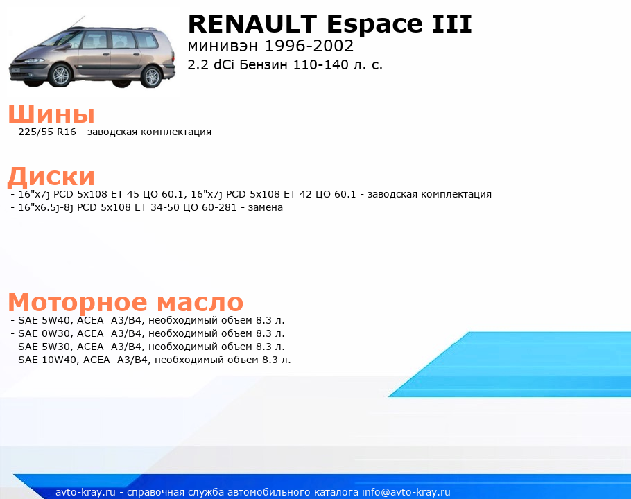 Espace III 2.2 dCi Бензин 110-140 л. с.