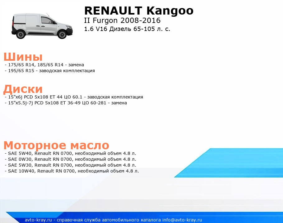 Kangoo 1.6 V16 Дизель 65-105 л. с.