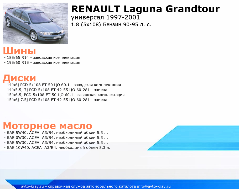 Laguna Grandtour 1.8 (5x108) Бензин 90-95 л. с.