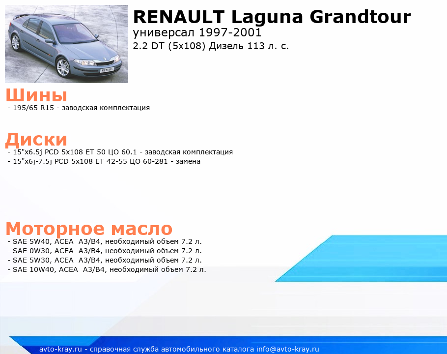 Laguna Grandtour 2.2 DT (5x108) Дизель 113 л. с.
