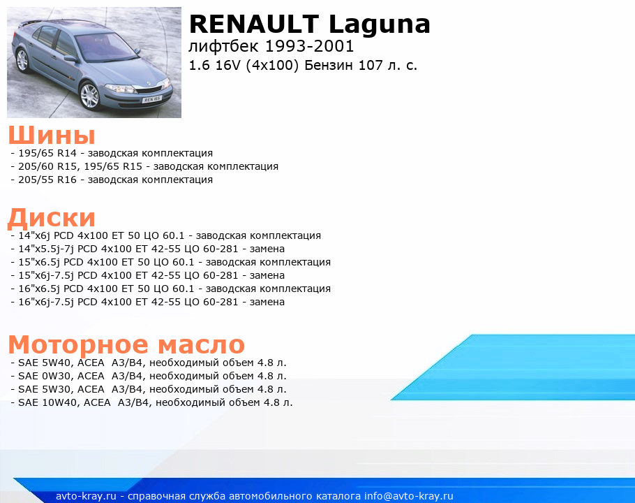 Laguna 1.6 16V (4x100) Бензин 107 л. с.