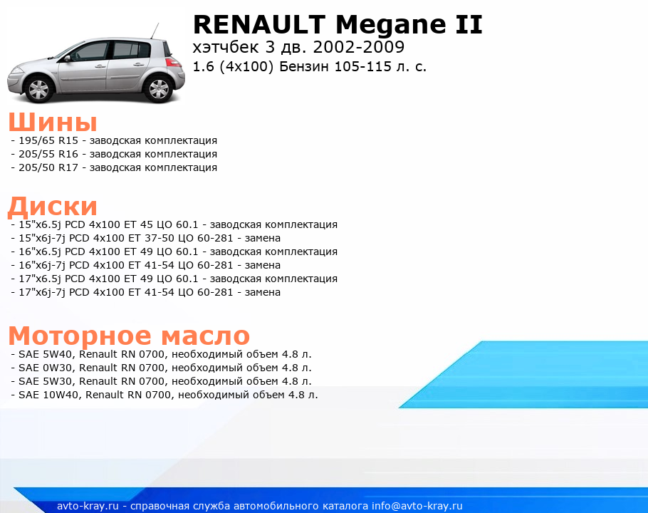 Megane II 1.6 (4x100) Бензин 105-115 л. с.