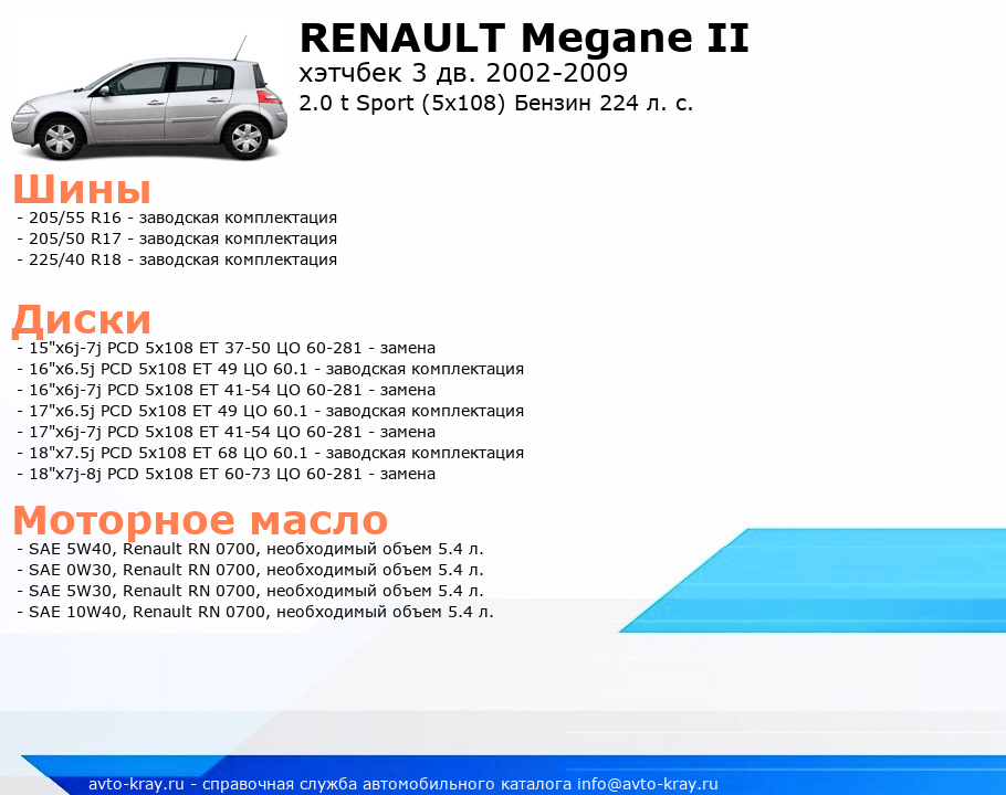 Megane II 2.0 t Sport (5x108) Бензин 224 л. с.
