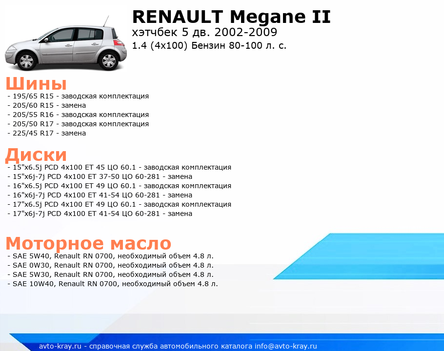 Megane II 1.4 (4x100) Бензин 80-100 л. с.