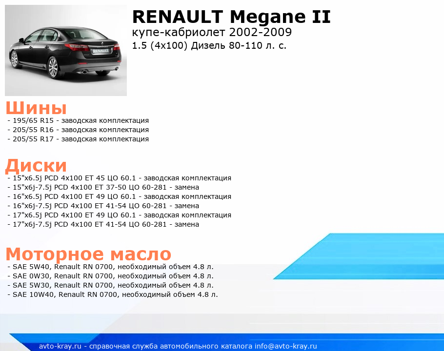 Megane II 1.5 (4x100) Дизель 80-110 л. с.