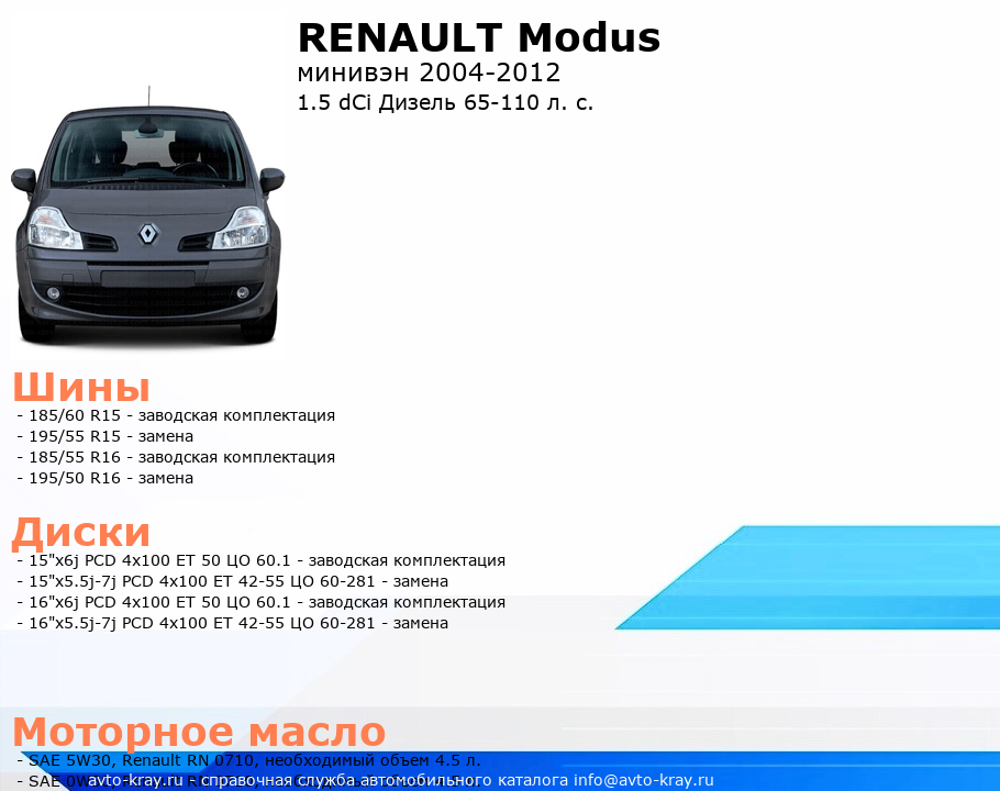 Modus 1.5 dCi Дизель 65-110 л. с.