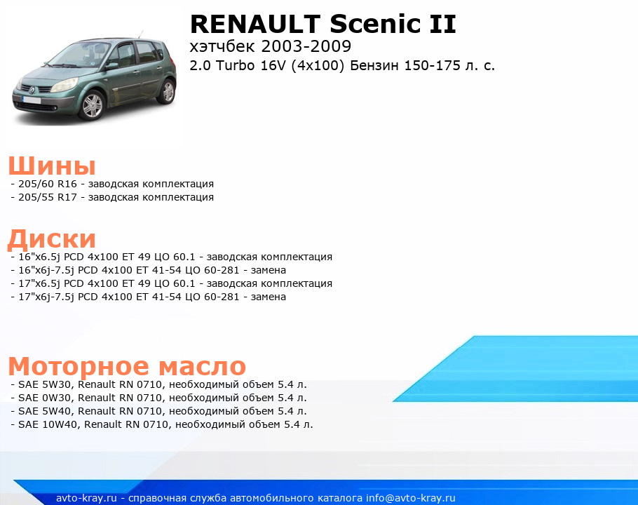 Scenic II 2.0 Turbo 16V (4x100) Бензин 150-175 л. с.