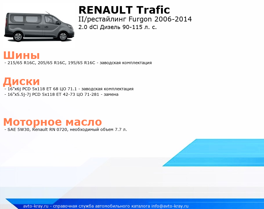 Trafic 2.0 dCi Дизель 90-115 л. с.