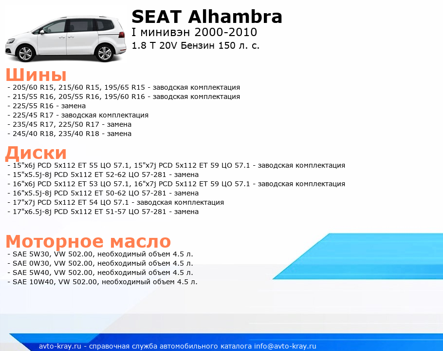 Alhambra 1.8 T 20V Бензин 150 л. с.