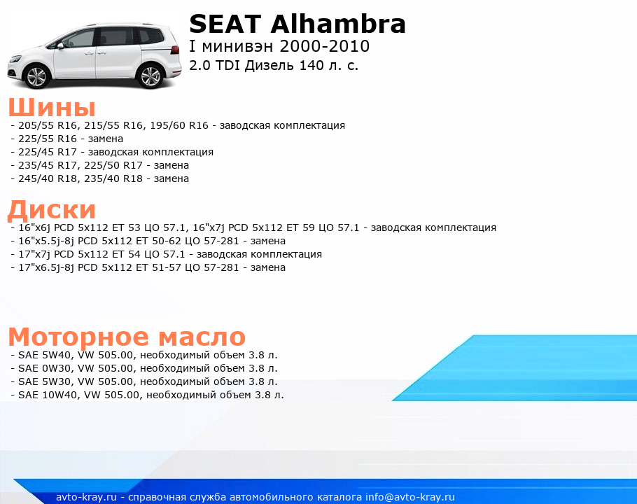 Alhambra 2.0 TDI Дизель 140 л. с.