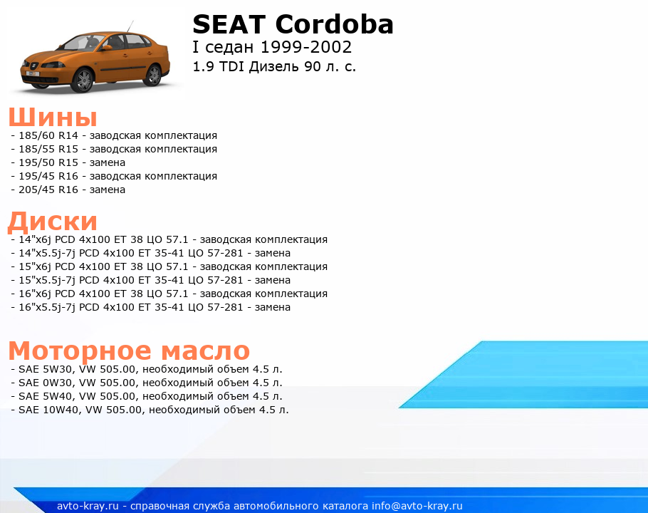 Cordoba 1.9 TDI Дизель 90 л. с.