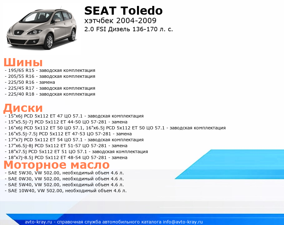 Toledo 2.0 FSI Дизель 136-170 л. с.