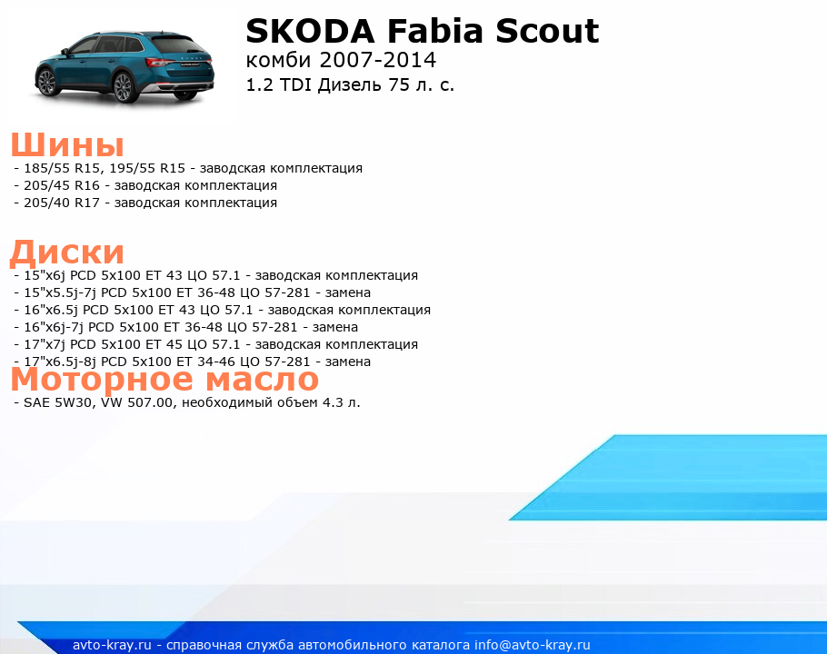 Fabia Scout 1.2 TDI Дизель 75 л. с.