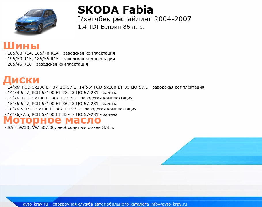 Fabia 1.4 TDI Бензин 86 л. с.
