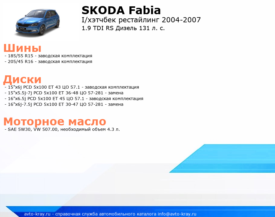 Fabia 1.9 TDI RS Дизель 131 л. с.