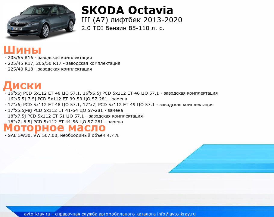 Octavia 2.0 TDI Бензин 85-110 л. с.