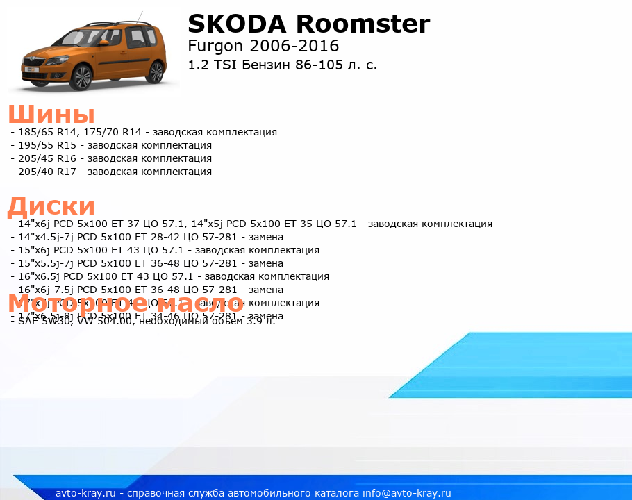 Roomster 1.2 TSI Бензин 86-105 л. с.