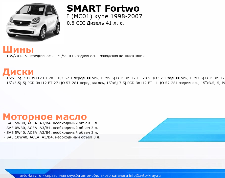 Fortwo 0.8 CDI Дизель 41 л. с.