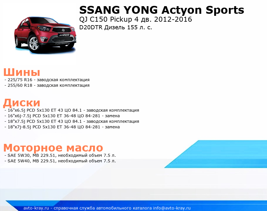Actyon Sports D20DTR Дизель 155 л. с.