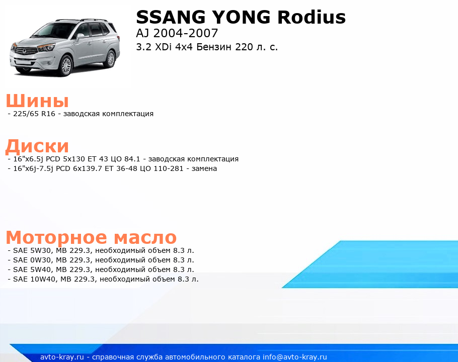 Rodius 3.2 XDi 4x4 Бензин 220 л. с.