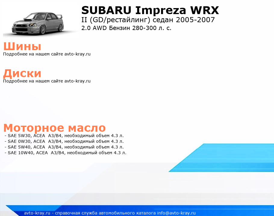 Impreza WRX 2.0 AWD Бензин 280-300 л. с.