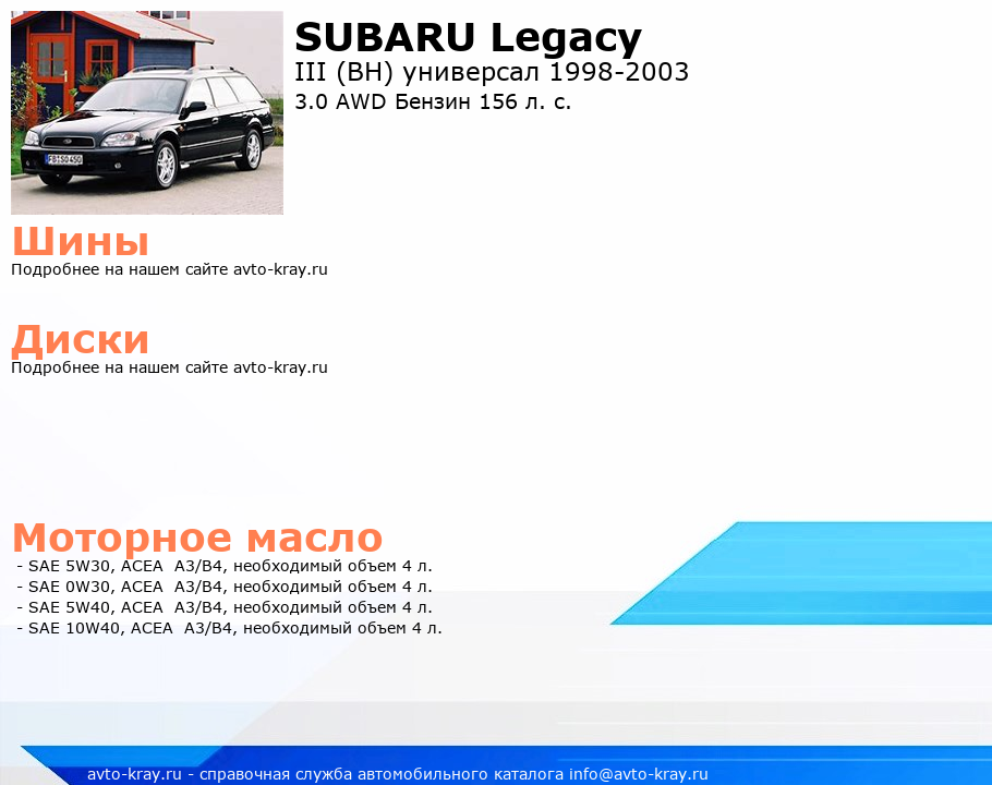 Legacy 3.0 AWD Бензин 156 л. с.