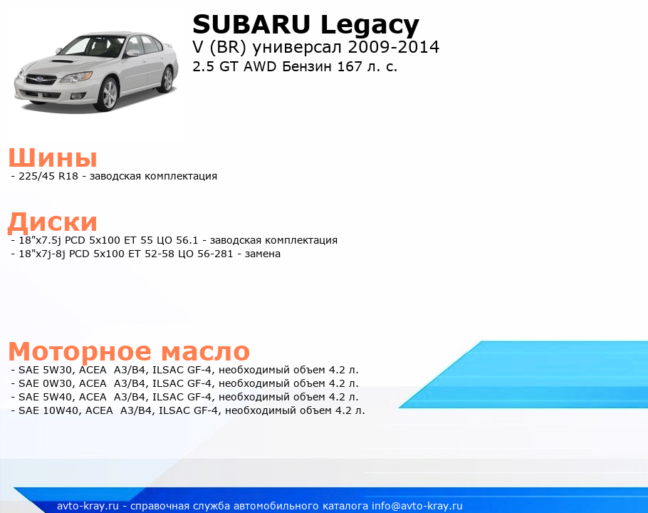 Legacy 2.5 GT AWD Бензин 167 л. с.