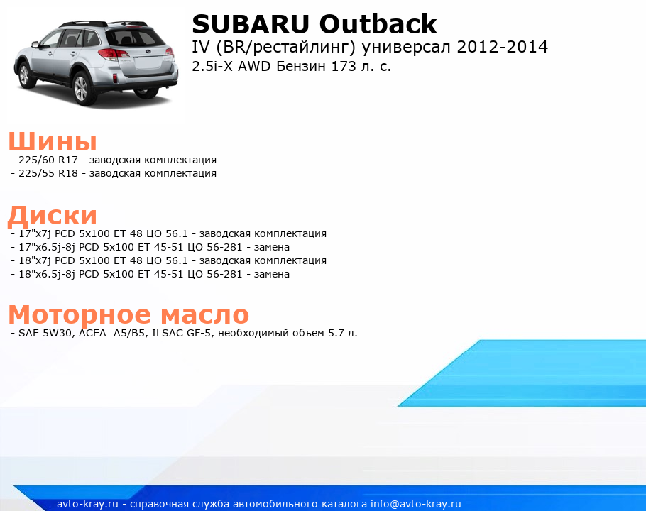 Outback 2.5i-X AWD Бензин 173 л. с.