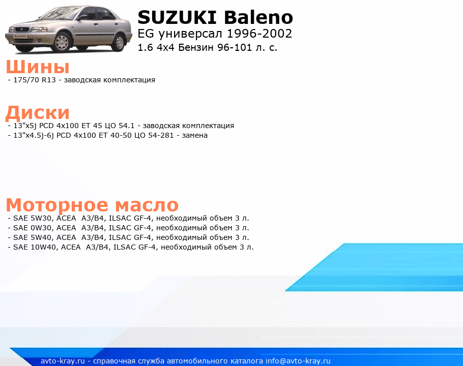 Baleno 1.6 4x4 Бензин 96-101 л. с.