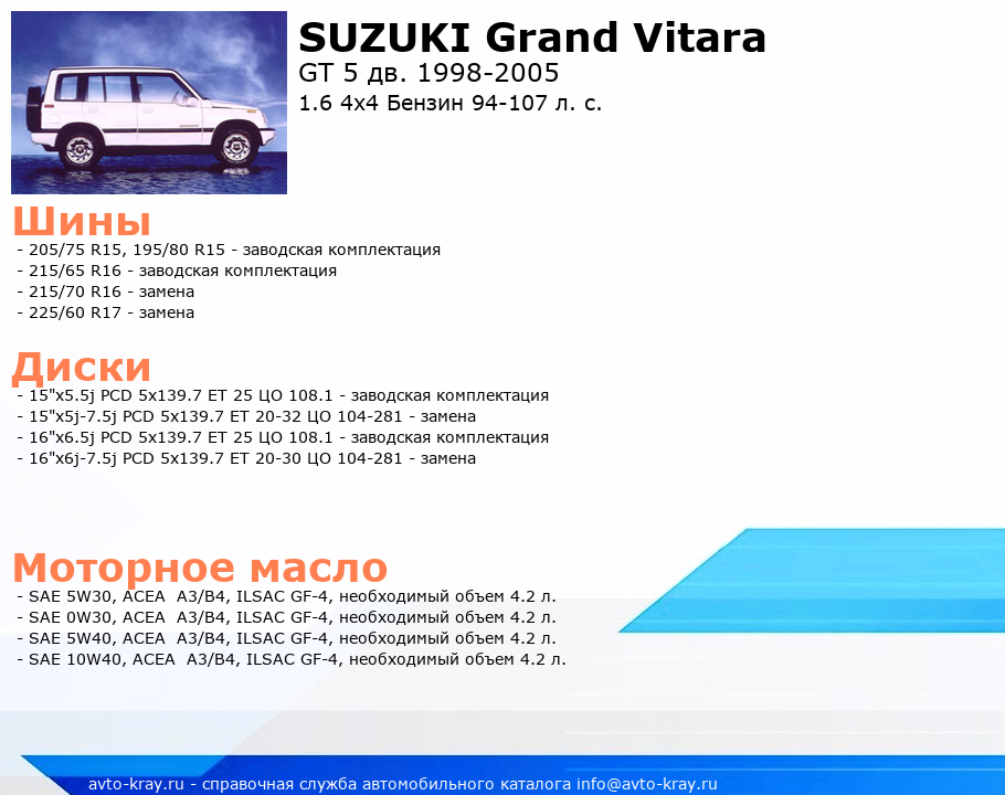 Grand Vitara 1.6 4x4 Бензин 94-107 л. с.